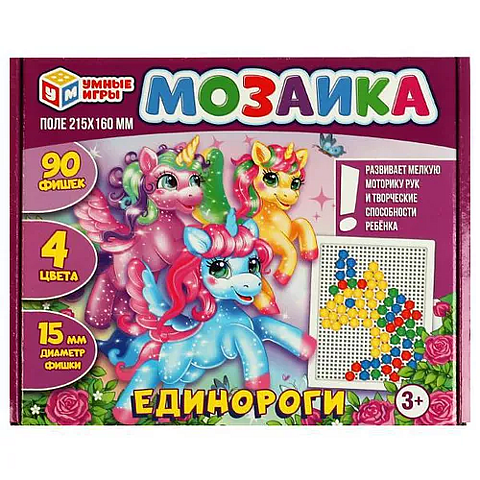 ЕДИНОРОГИ. МОЗАИКА пластиковая. 90 фишек прямоугольная, 4 цвета. Умные игры в кор.20шт 4650250508939